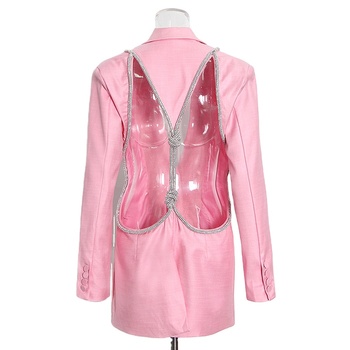 2022 Blazer moda tinta unita Sexy Halter donna manica lunga moda Blazer 2022 Set corto donna donna