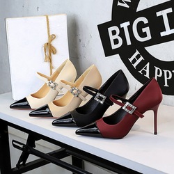 אירופה בסגנון אמריקאי 2125 משאבות עבור נשים עקב גבוה סופר עקבים גבוהים נעלי עקב רדוד צבע פה מפוצלת רצועת ריינסטון הצביע