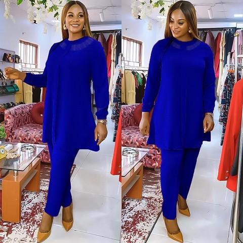 2022 חדש מודפס חולצה חולצה למעלה וארוך רחב רגל פורמליות עסקים צפצף שתי חתיכה חליפת סטים לנשים
