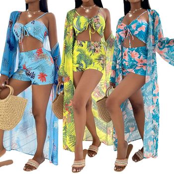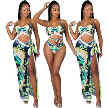 נשים 3 pcs לשחות חליפות סטים נשים הסיטונאות דה ביין ו מטמון חוף ארוך sarong לכסות את הים ואת בגדי ים סטים