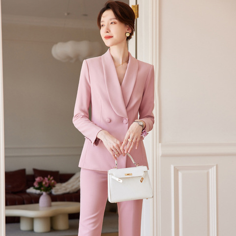 スーツパンツツーピース2023新しい高品質ダブルブレストオフィス婦人服トップレディーススーツコートタキシード