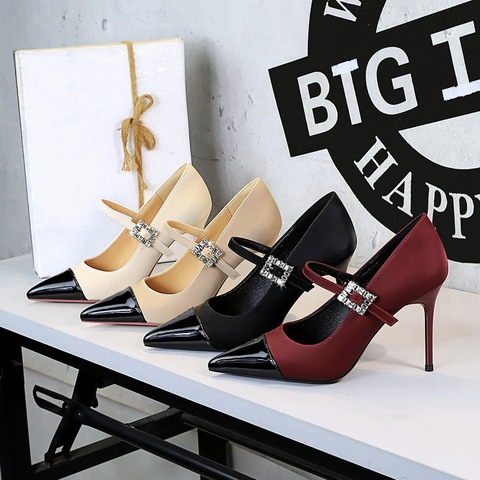 รองเท้าส้นเข็มซาติน1926-2หัวสำหรับผู้หญิงแฟชั่นสไตล์ยุโรปอเมริกันแฟชั่นสำหรับงานเลี้ยง